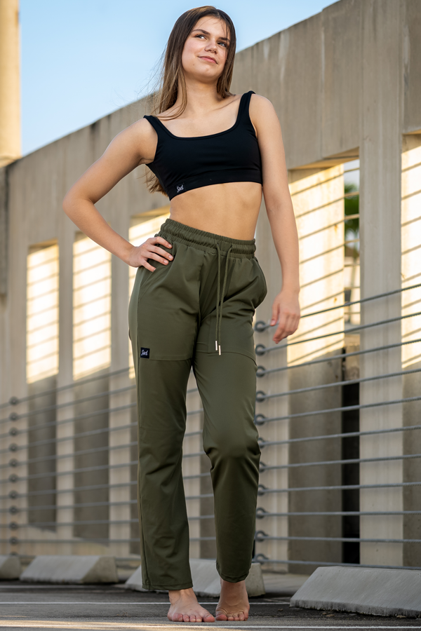 Designed by Soel Girl Ally Reuter @dancer.allyson.reuter the Ally Jogger has clean lines, functional drawstrings, pockets for design and function and the most comfortable fabric so you can let your movement shine on the dance floor!